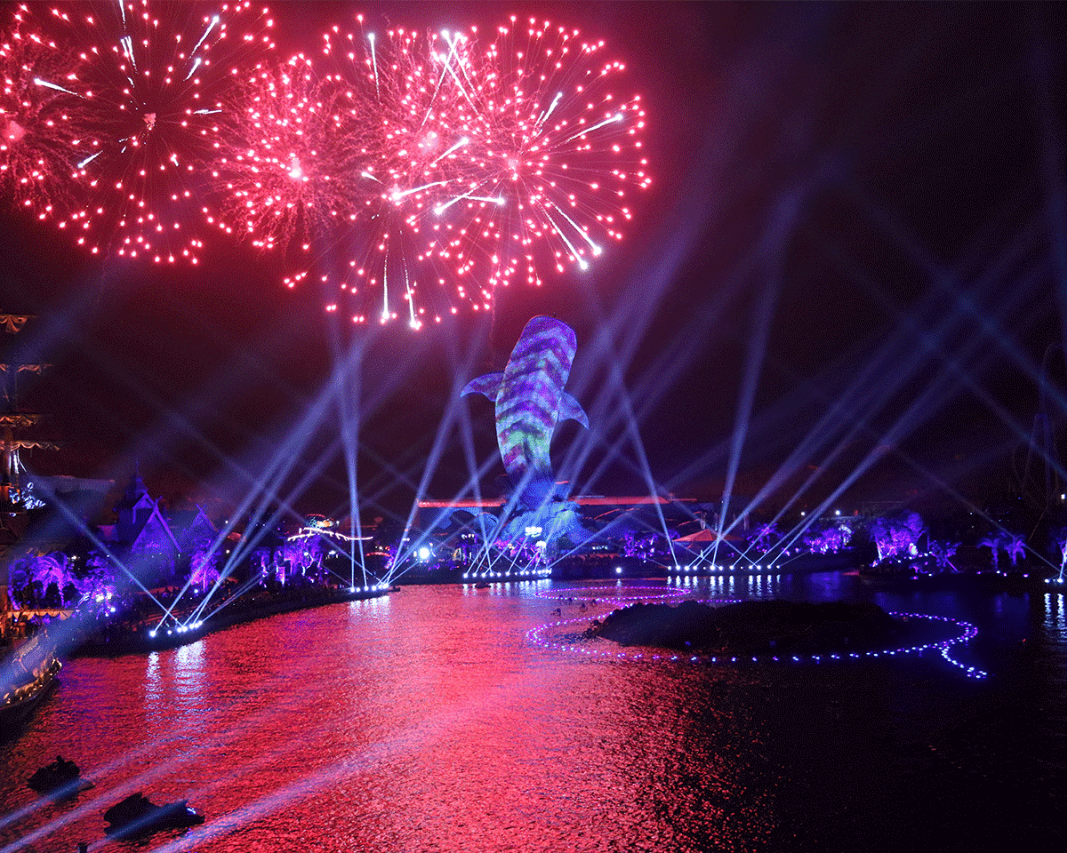 【一场灯光与科技的完美邂逅】浩洋灯光魅力助阵珠海长隆海洋王国中心湖大型汇演《海洋保卫战》压轴上演