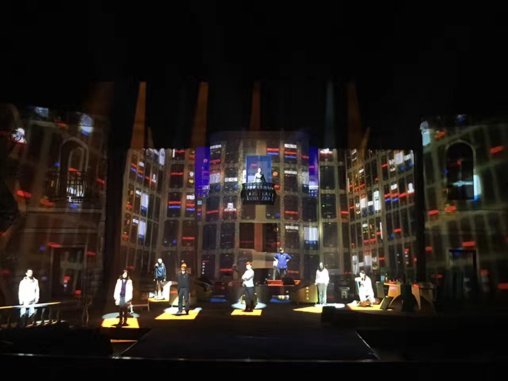 该剧有对人物灵魂的拷问、对人性的追问,也有对生命意义的表达,在雄浑凝重的灯光设计风格上,着重呈现剧目的人物塑造。该剧中,LED切割灯GL-6和LED图案灯GL-5,承担了剧目面光和舞台特效的作用,凭借高亮度、均匀的光斑、全面的功能和稳定的运转,成功为该剧护航。尤其是LED灯具在调光、频闪上更加细腻线性的表现,有助于剧情传达更加微妙细致的情感。另外,天幕灯C5的八色混色,让色域宽广、换色细腻,投光式渲染法使得效果均匀自然、一致性高,渲染剧场气氛。