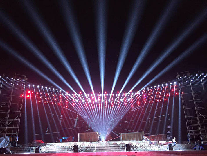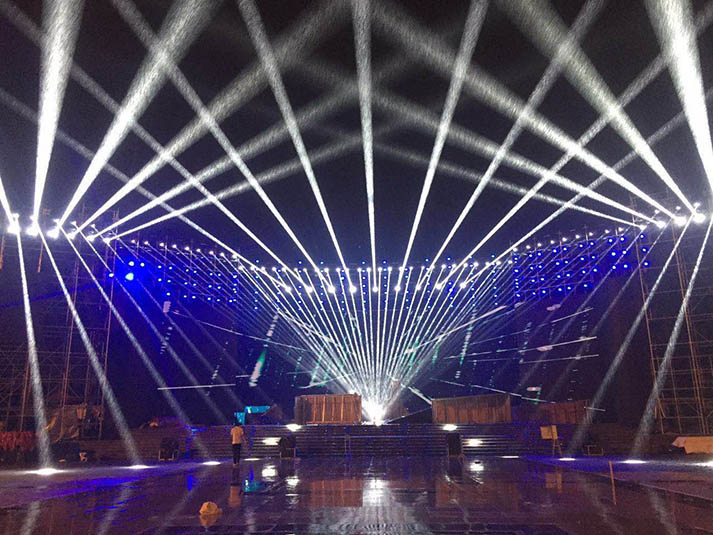 今晚(农历三月初三),由海南省人民政府主办,海南省民族宗教事务委员会、海南省文化广电出版体育厅、海南省旅游发展委员会、海南省商务厅、琼中黎族苗族自治县人民政府承办,以“浪漫三月·情定琼中”为主题的2017年海南黎族苗族传统节日三月三主会场活动在琼中三月三广场隆重开幕。浩洋电子自主研发特宝丽品牌近500台高品质专业舞台灯光产品:全能王三合一G9 HYBRID、切割灯V3000P、光束灯G9B、染色灯V1500TW、大光束灯V1500TB、防水固定染色灯OVAL 60D等炫耀担任琼中主会场舞台灯光主力,为今年海南“三月三”民俗节庆晚会倾力献力。