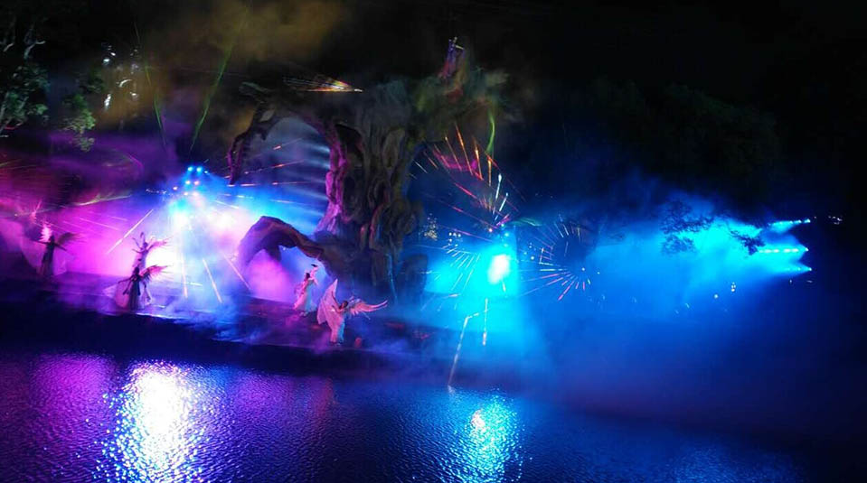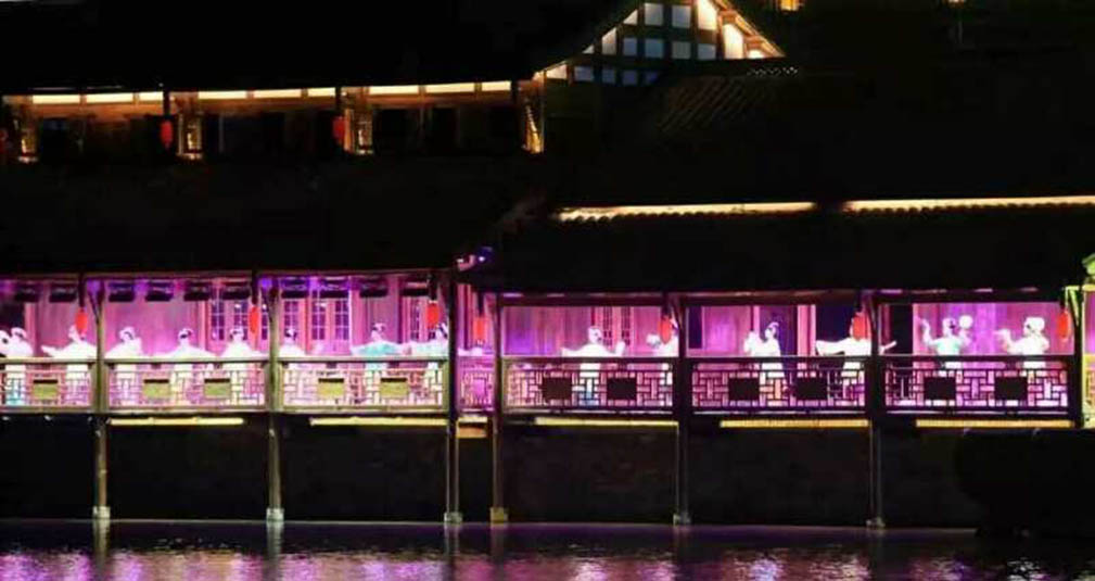 《梦回穿紫河》是由湖南省演艺集团与经山水公司共同整合相关资源,并集合国内最优秀的编创团队,历时半年,精心打造的湖南首台城市风情实景灯光演出秀。浩洋电子倾力参与打造,承担了从系统设计、设备供应、安装实施、彩排合成到技术服务支持的全部灯光工程内容,应用浩洋电子旗下特宝丽品牌14R及20R三合一电脑灯、图案切割灯PT801P、LED PAR灯A59、防水罩WP06等近500台专业灯光产品,通过灯光设计与演出内容的紧密结合,巧妙地将的唯美绚丽的灯光与旖旎的穿紫河水融为一体,为游客呈现了一场具有浓郁水乡风情及丰厚人文底蕴的光影艺术飨宴。《梦回穿紫河》的精彩首秀,接连获得社会各界的高度好评!