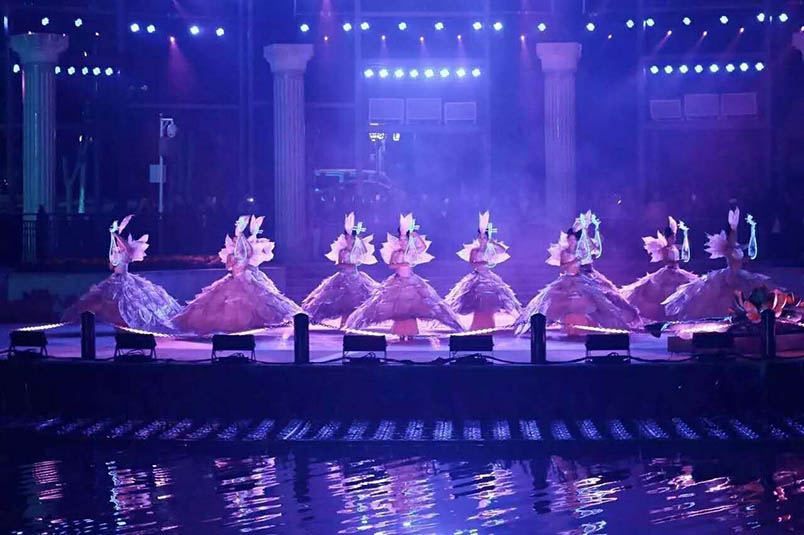为了打造出桨声灯影、美轮美奂的演出效果,浩洋灯光的300多台三合一电脑灯担起了重任,强大的光束、染色与图案功能组合和极富空间感的艺术表现力,打造出亦真亦幻的时空幻境。