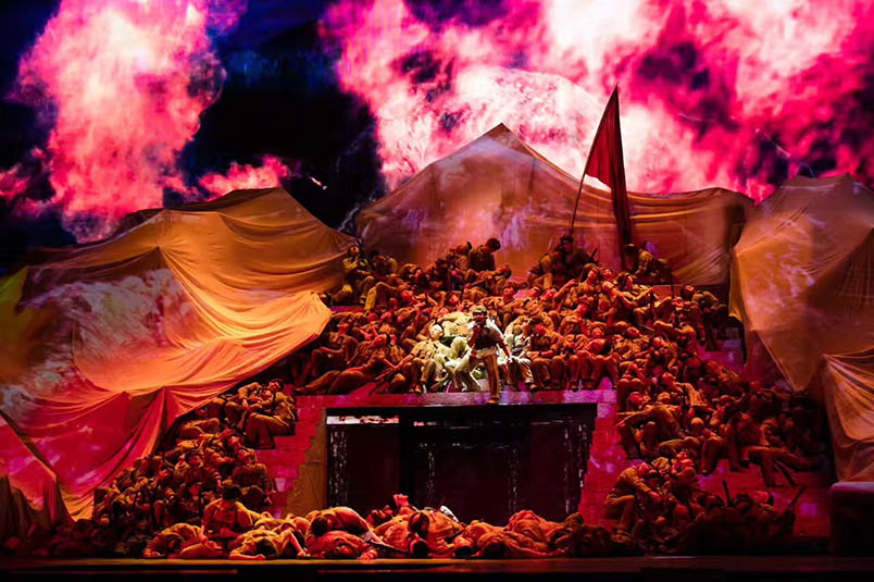 3、调整好灯光投影的光影效果与舞美场景和服装的色彩关系。灯光的亮度和颜色一定要起到锦上添花的作用,深化人物形象的内涵和外在表现力、感染力。