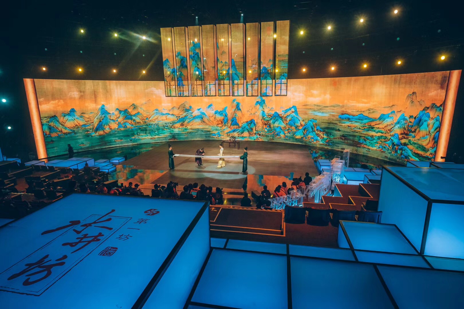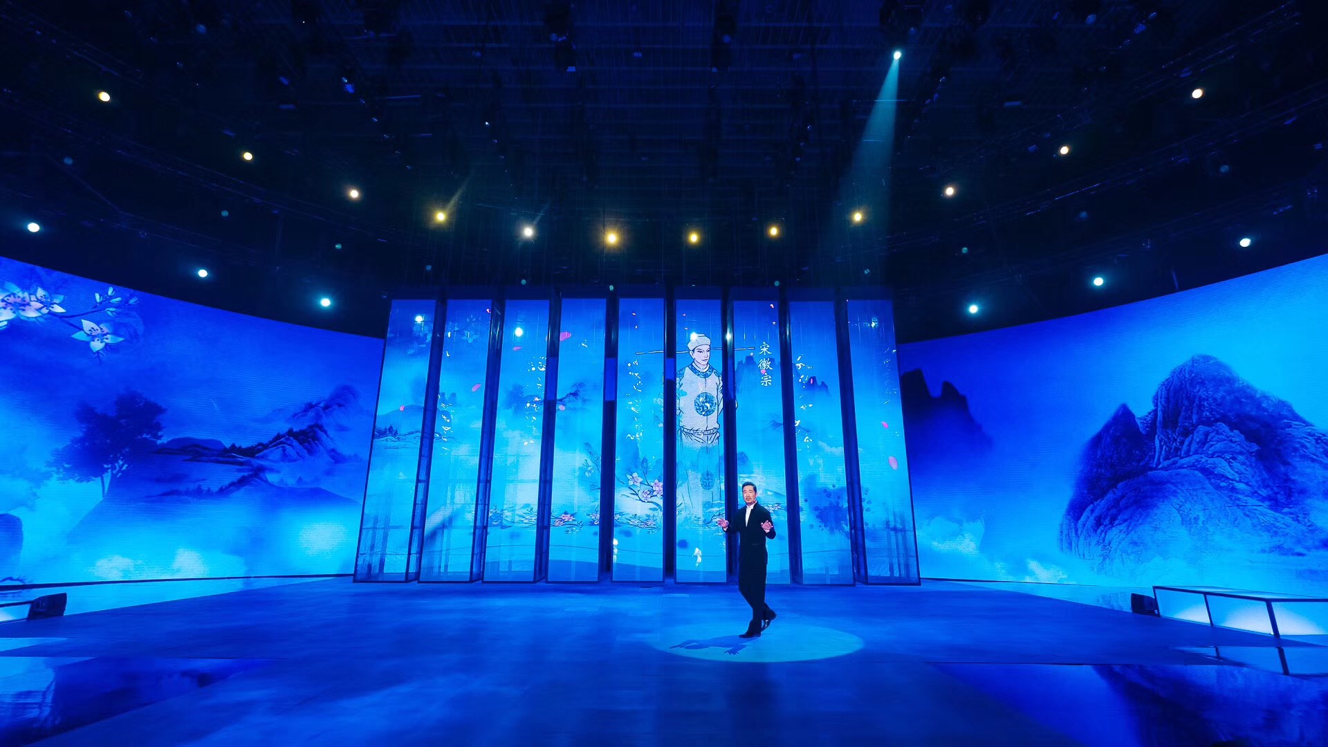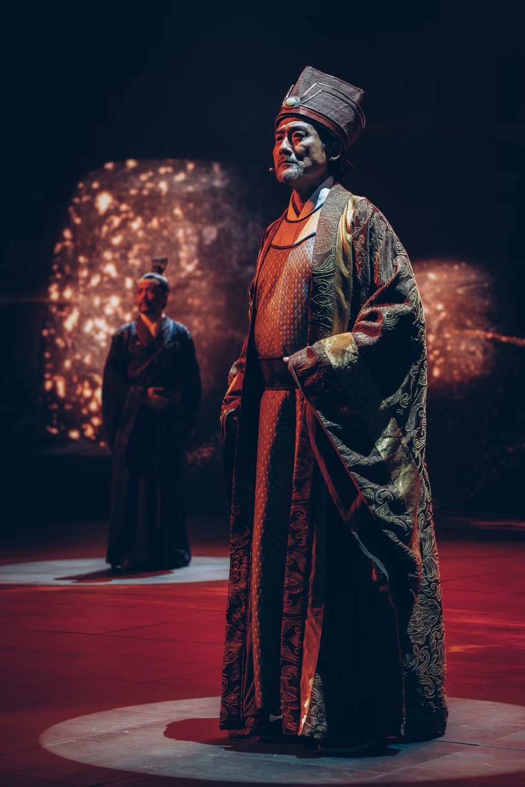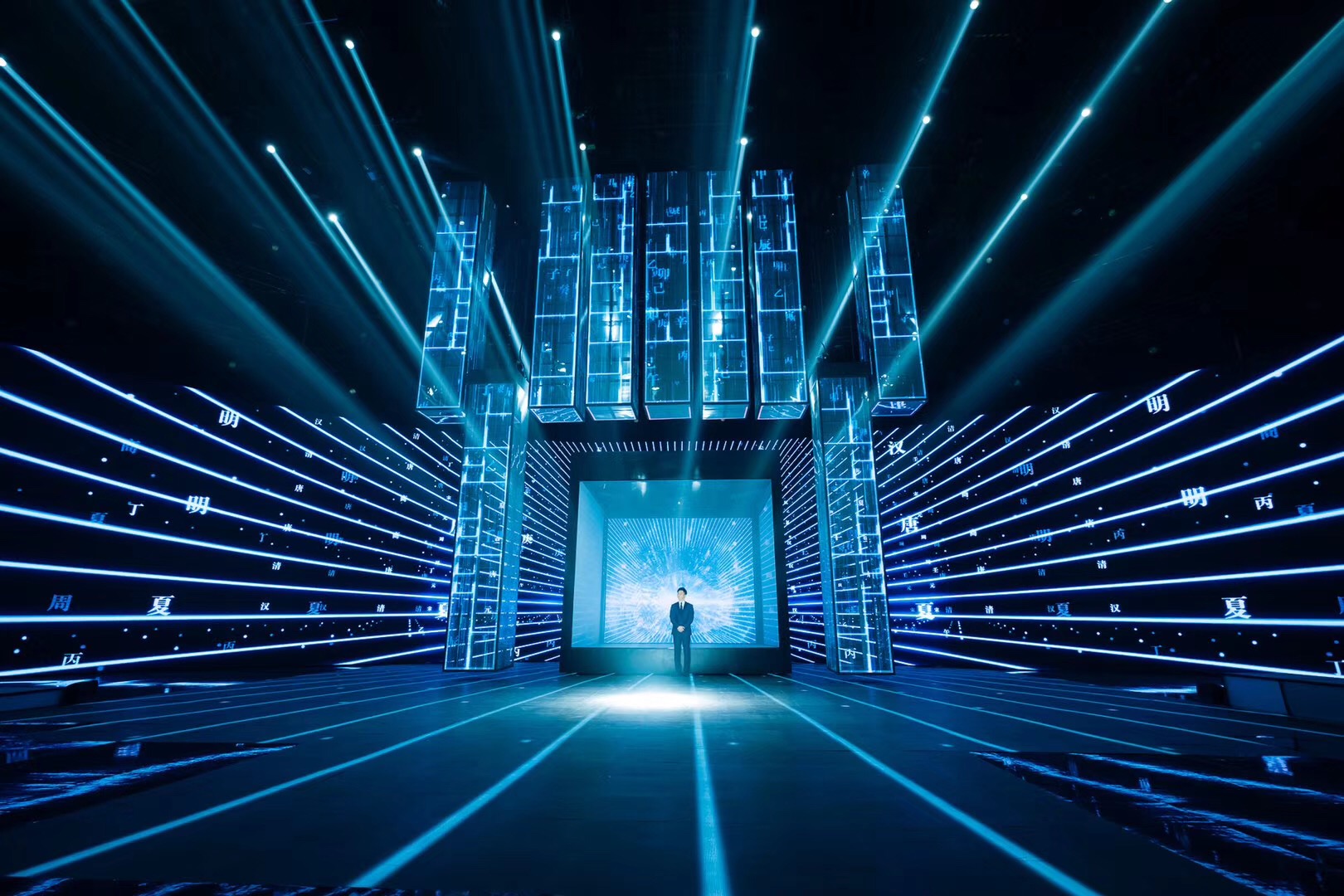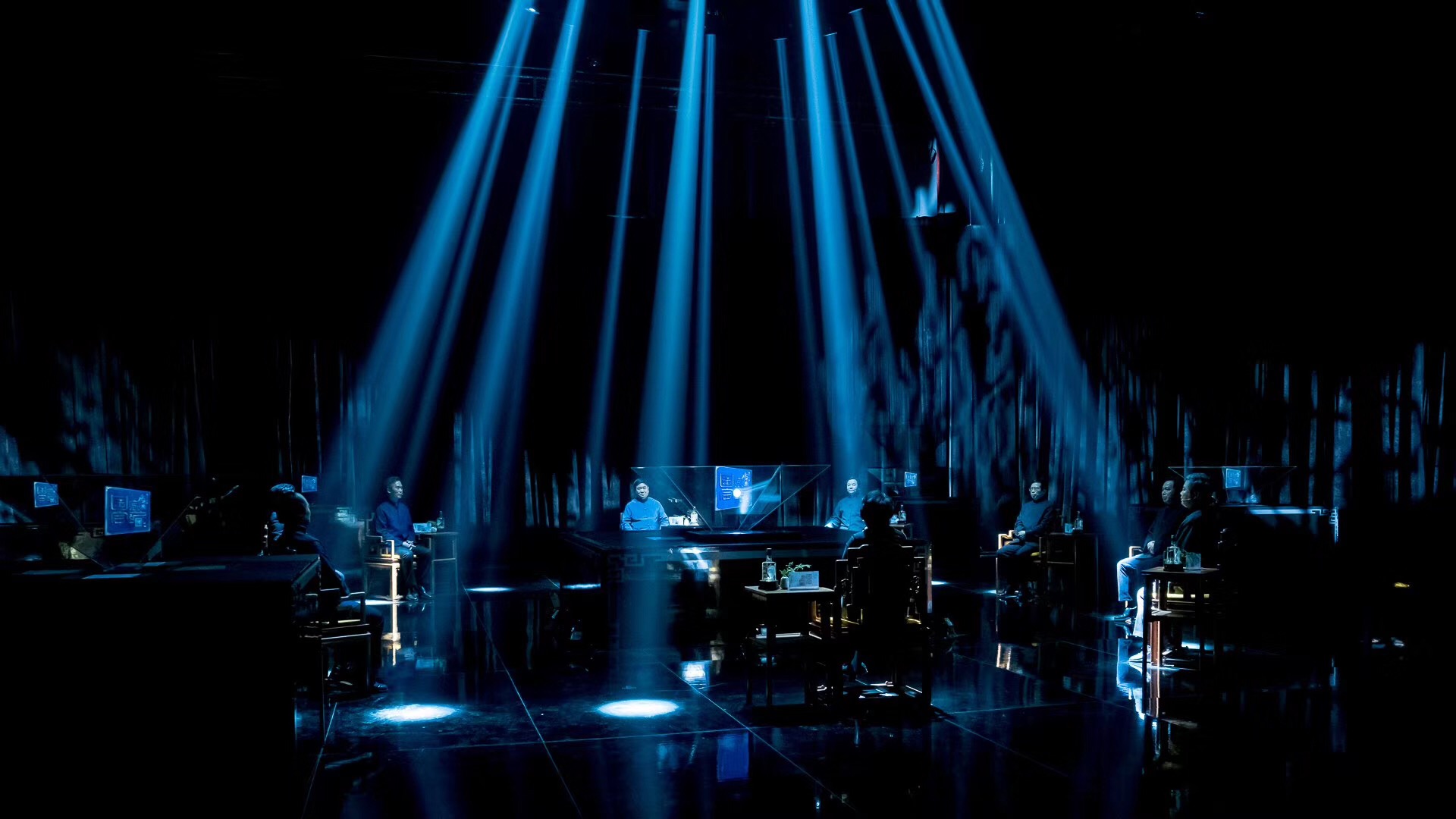 舞美设计简约不简单,通过灯光变幻营造出五千年时空重叠,古今碰撞的文化磁场。