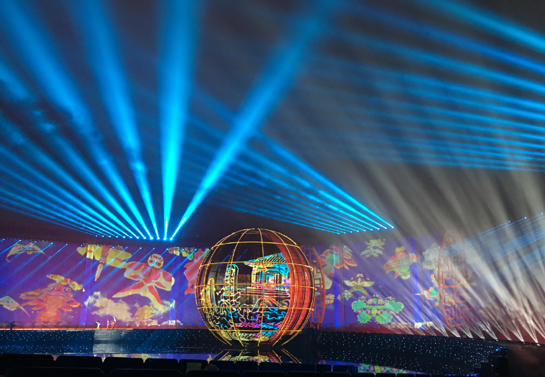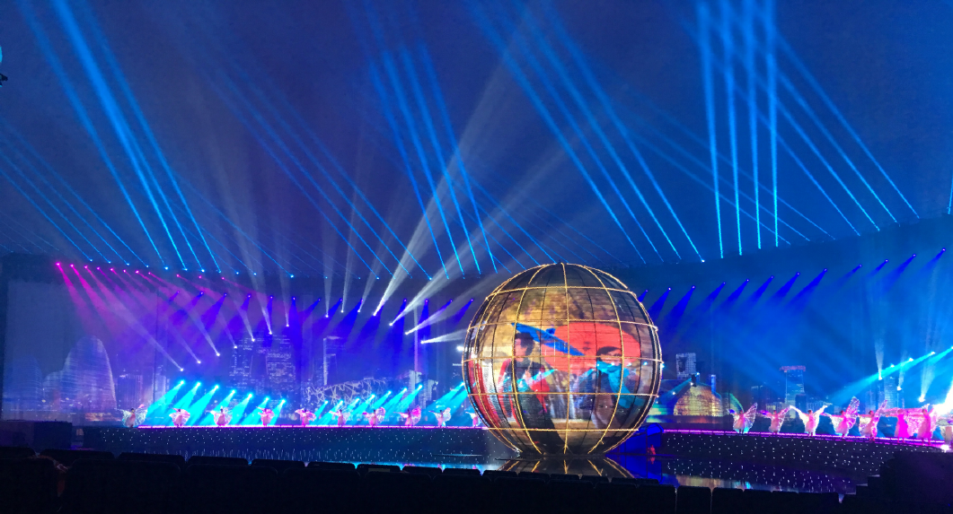 特别在本次灯光焰火演出中,浩洋电子的飞灯系统依然成为了一大亮点,与众不同的是,浩洋飞灯系统打破了“灯位不动,只有光在运动”的限制,让电脑灯本身也运动起来,自由翱翔,实现从“光的运动”到“运动的光”着巨大的转变。浩洋飞灯系统的研发是与2016年9月杭州G20峰会文艺演出《最忆是杭州》息息相关,当时的总制作人著名灯光设计沙晓岚提出“舞蹈演员吊挂着威亚,从外湖飞入西湖演出舞台”的设想,与合作方浩洋电子进行了大量的研发试验,但由于西湖的地理位置限制,这个创意未能实现,研发的成果也保留了下来,最终在2017年的央视春晚桂林分会场实现了浩洋飞灯系统的全球首秀。在本次上海合作组织青岛峰会灯光焰火艺术表演中,浩洋飞灯系统以创新科技化灯光震撼献力国家重要演出活动,勾勒出一幅科技灯光与文化相融合的视觉美景。
