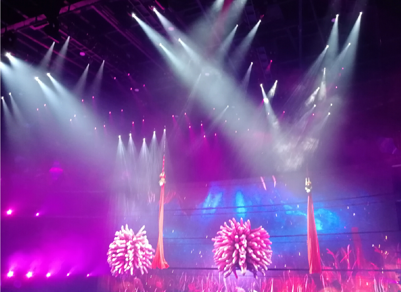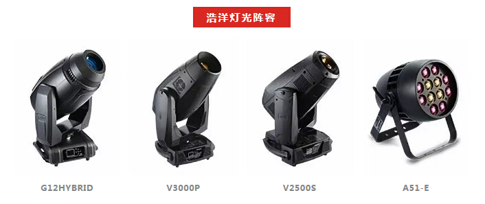 演出中,浩洋电子全能王三合一电脑灯G12HYBRID、切割灯V3000P、图案灯V2500S、LED PAR灯A51-E近400台专业舞台灯光设备为现场助阵。浩洋灯光设备投射出炫目的灯光,与现场的烟雾、水面特效、无人机、各种大型自动化舞美机械在内的国际顶尖舞台技术相互配合,融合水中芭蕾、空中艺术、花式跳水等众多表演元素,共同呈现原创钜制,还原了传说中神秘古老的“亚特兰蒂斯”世界。