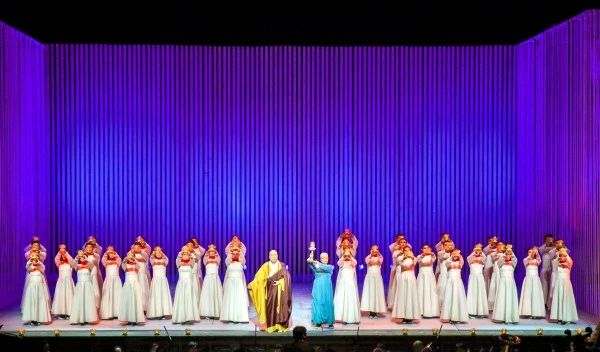 《鉴真东渡》运用歌剧这一国际通识的艺术表达话语,配合有感染力的表演,富有创意的舞美灯光设计,生动、立体的人物架构,在遵循歌剧艺术规律的基础上,创造性地将江苏民歌元素和佛教音乐的旋律融入其中,让歌剧更富有地域特色,呈现出不同于纯粹西方歌剧的风格,展现出东方所特有的历史厚重感与人文风貌。
