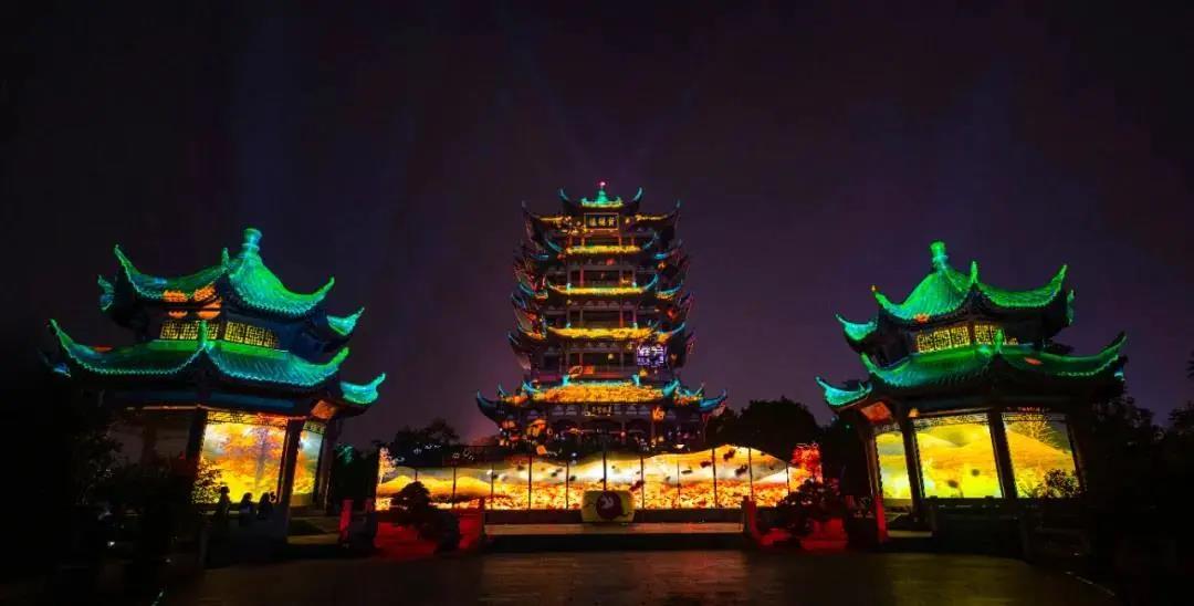 夜幕下的黄鹤楼,曾让无数文人骚客触景生情、以景抒怀、借景言志。如今,作为武汉地标,黄鹤楼又添新的科技元素。《夜上黄鹤楼》以黄鹤楼公园为载体,围绕特有的历史文化,采用声、光、电、舞、美、化结合的手法,通过高科技光影技术,打造“夜武汉”新的地标。