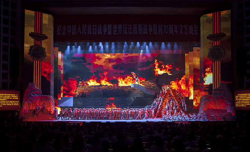 此外,于9月3日晚,在京的中央领导同志与出席抗战胜利70周年纪念活动的各国元首、部分外国政要、国际组织代表,抗战老战士老同志的代表及首都各界代表,共计6000余人将出席以“胜利与和平”为主题的抗战胜利70周年文艺晚会。浩洋电子以自主品牌特宝丽的V2000W,1500W 摇头染色;V3000P 1500 彻割成像电脑灯;G10 Hybrid三合一全能王电脑灯;OK370Z Led 摇头染色;PT320B 摇头光束电脑灯为抗战胜利70周年增加色彩,让过去的历史在浩洋的灯光海洋中展现出恢弘大气、气势磅礴、震撼人心的史诗性艺术效果!!!