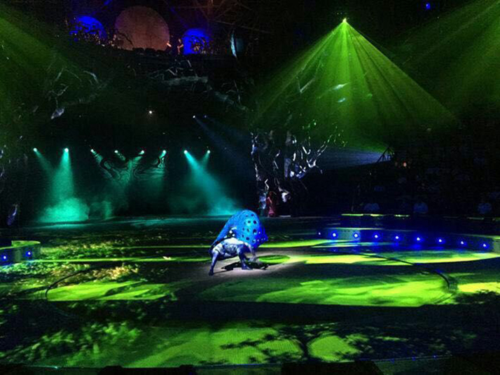浩洋电子大功率切割成像电脑灯V3000P拥有领跑行业的精准切割效果,能够平滑、自然的切割出多种图案,均匀顺滑的CMY混色系统、0-100%线性调光和柔光雾化效果,可呈现出如呼吸般自然的光色变幻。这款成功服务过南京青奥会、APEC峰会、多届央视春晚和“世界第一秀”汉秀舞台的切割电脑灯,在傣秀剧场中依旧延续了它一贯的出色表现,被用作各种特殊场景的切割造型和人物面光处理,并与另外两款浩洋电子摇头图案灯PT320S和V3000S一起合力打造出各种虚实结合的视觉奇观。