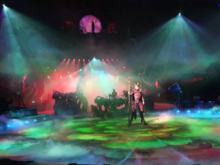 在90分钟的傣秀表演中,由浩洋电子切割灯、光束灯、图案灯和染色灯共同组成的顶级灯光阵容,随故事情节的推进不断幻化出各种梦幻、神秘的舞台效果,为观众呈现了一场震撼心灵的视觉盛宴!