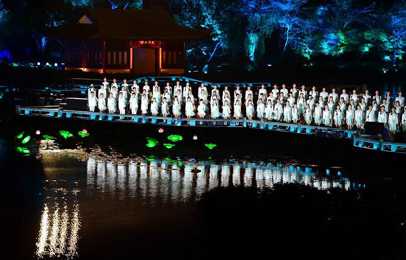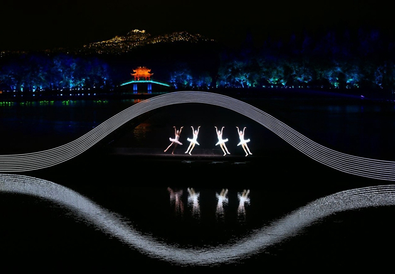 灯光是此次演出的一大亮点,晚会总导演张艺谋说:“50分钟的演出我们有100个以上的灯光变化,要靠灯光、湖水倒景、月色等方方面面传递出诗情画意。”作为2008年北京奥运会开闭幕式灯光总设计、2014年APEC欢迎晚宴活动灯光创意总监,此次G20峰会文艺演出的总制作人沙晓岚,用灯光对西湖的山、水等自然元素进行艺术再创作,勾勒一幅惊艳世界的视觉美景。