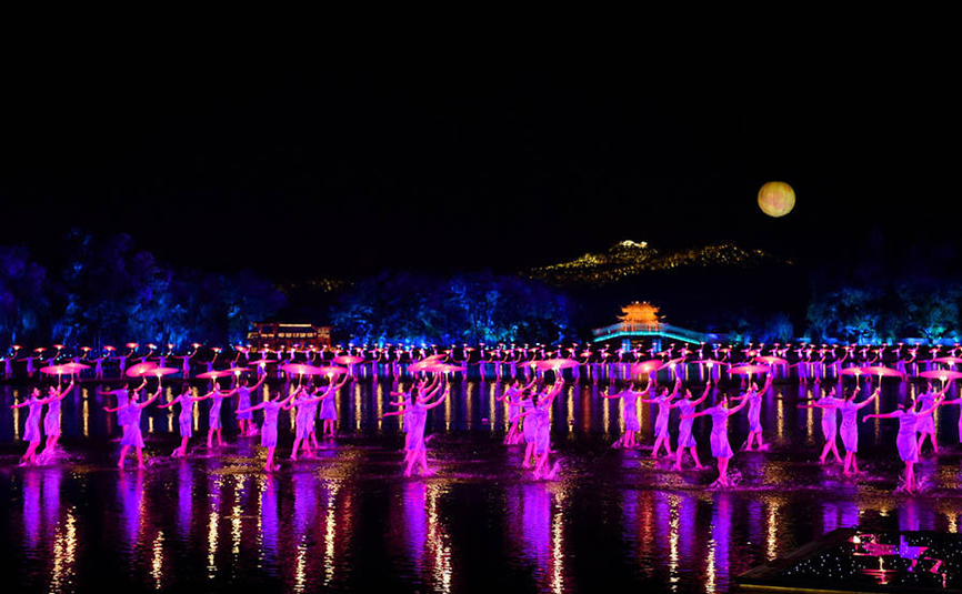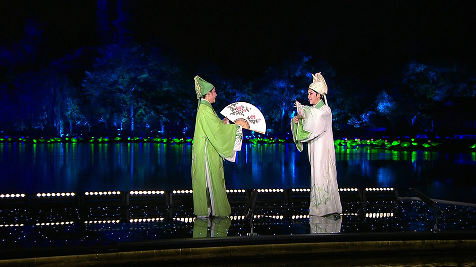 不同于传统舞台,利用西湖的自然水面作为表演场地也给《最忆是杭州》文艺晚会的光位设计带来了不小的挑战,现场干净、有力的面光和侧光等光位的运用,使得被照物体清晰可见的同时又塑造了较好的人物轮廓。