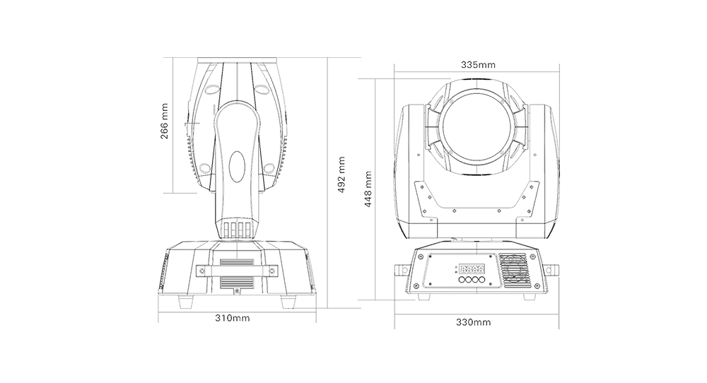 可从控台完成更改DMX地址码,遥控开关灯泡,机器重设,声控模式的转换等功能
