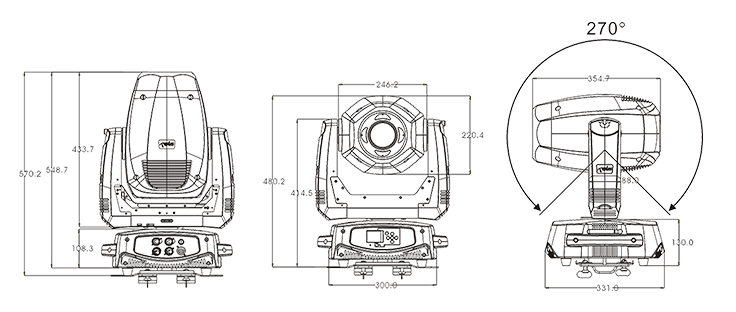 可从控台完成更改DMX地址码,遥控开关灯泡,机器重设,声控模式的转换等功能