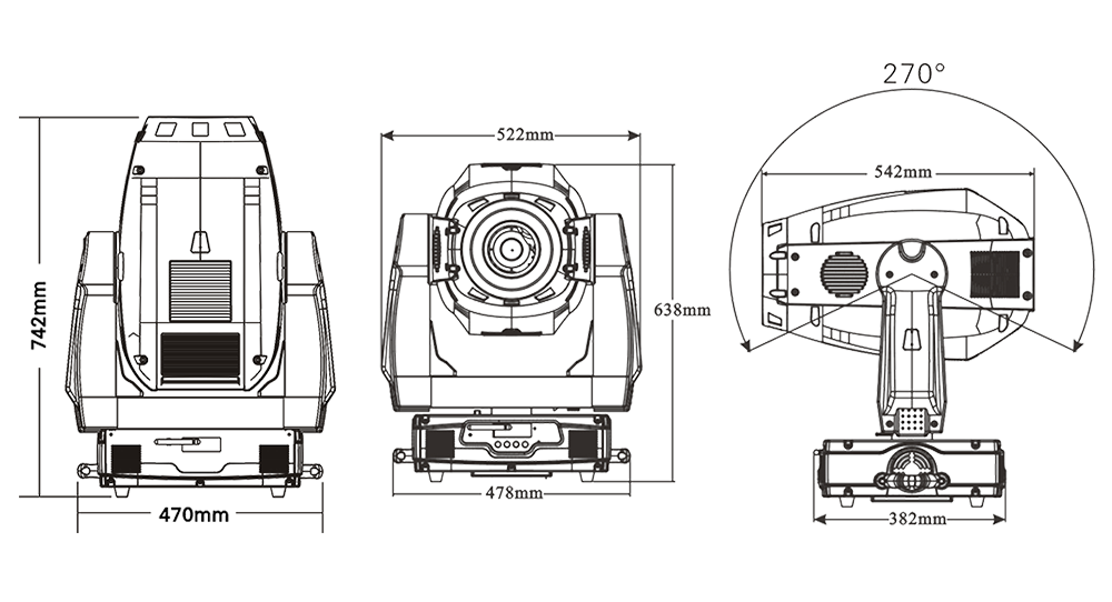 可从控台完成更改DMX地址码,遥控开关灯泡,机器重设,声控模式的转换等功能