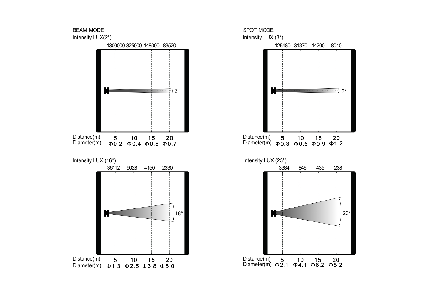 变焦范围:光束模式:2°-16°,图案模式:3°-23°