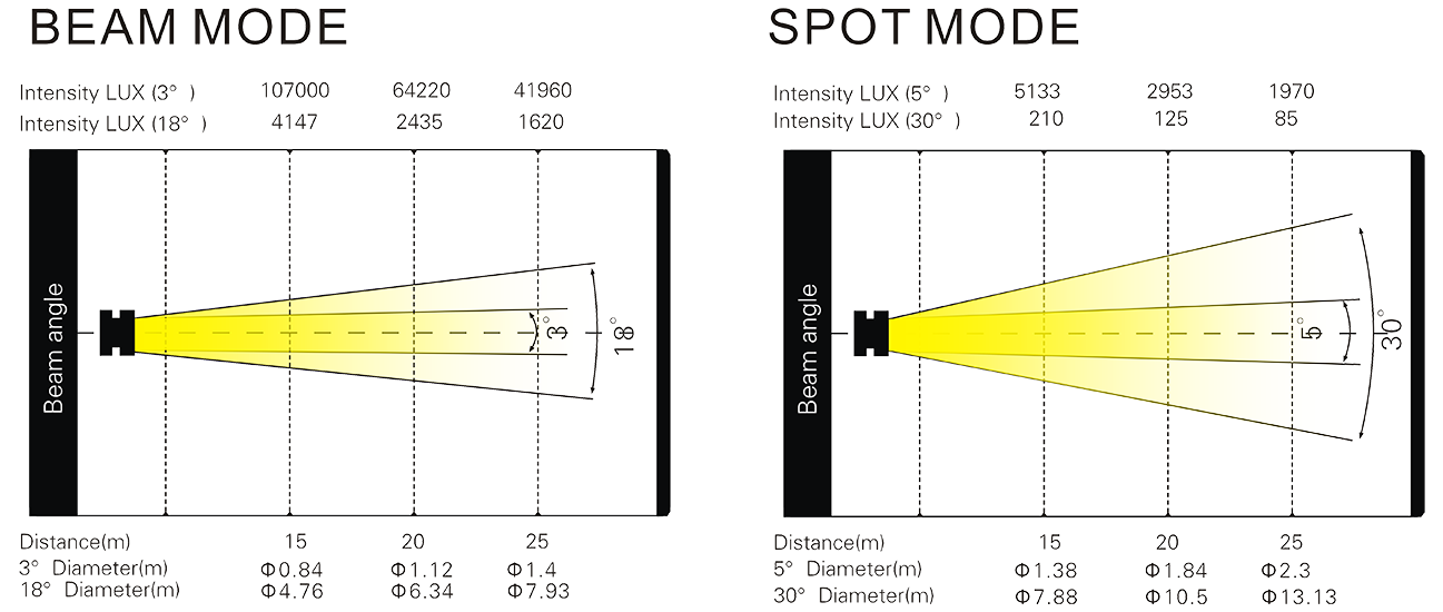 电动放大,光束模式:3°~18°,图案模式:5°~30°