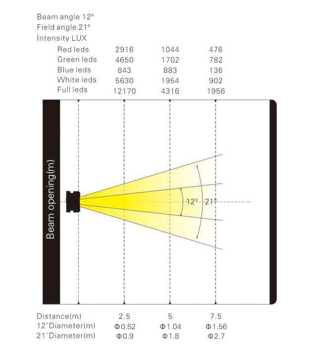 LED类型:16颗10W大功率RGBW 4合1 LED,达到均匀细腻的混色效果