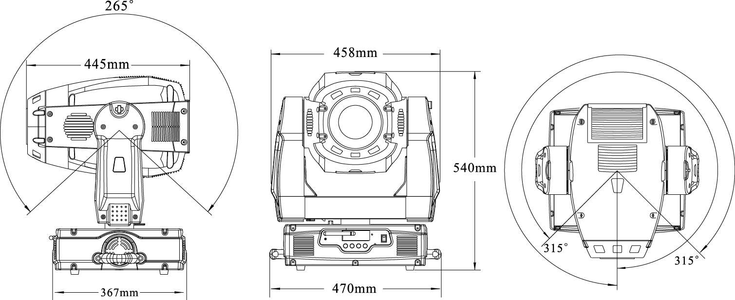 可从控台完成更改DMX地址码,遥控开关灯泡,机器重设,声控模式的转换等功能