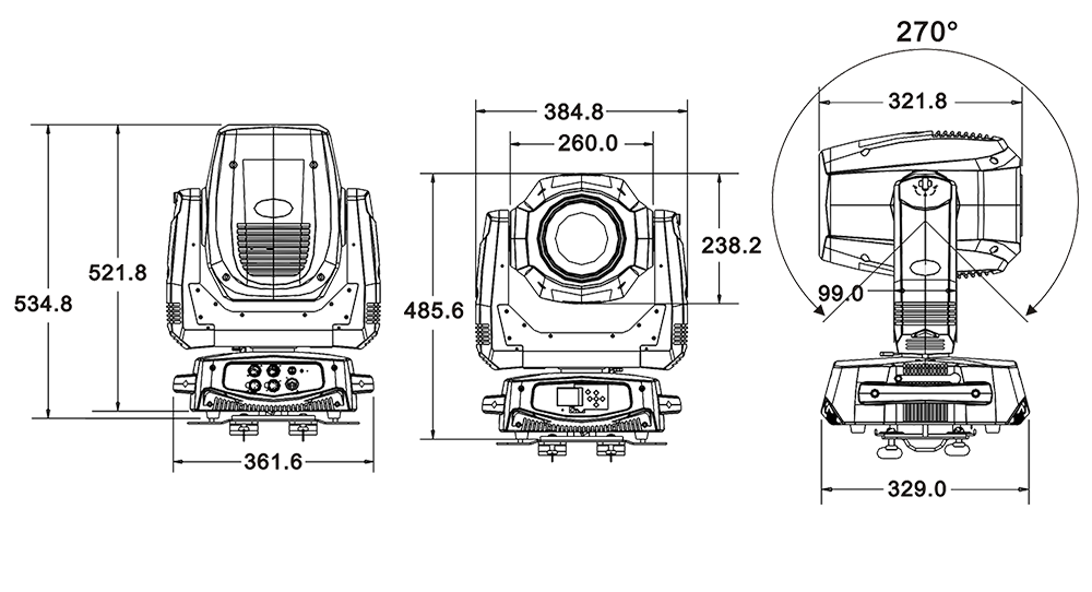 可从控台完成更改DMX地址码,遥控开关灯泡,机器重设,声控模式的转换等功能