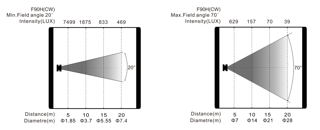 变焦范围:12.5°- 60°(光束角),20°- 70°(光斑角)