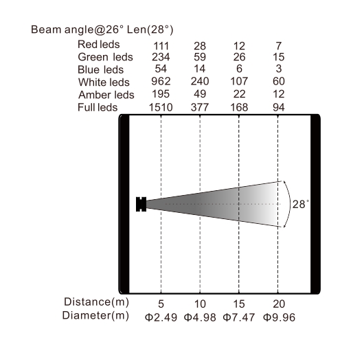 光学角度:28°@26°镜头(可选19°/36°/50°)