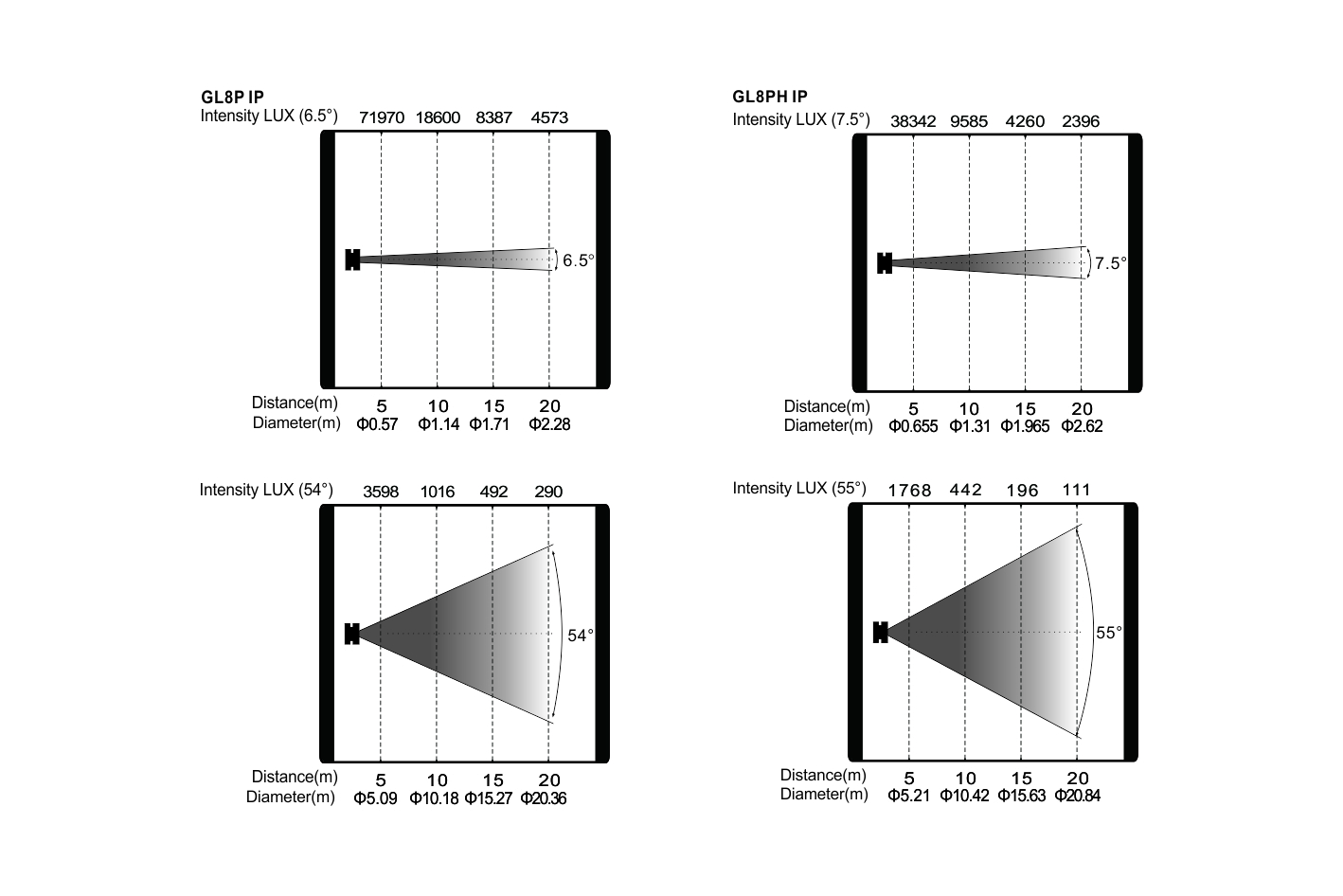 变焦范围:6.5°- 54°(GL8P IP), 7.5°-55°(GL8PH IP)