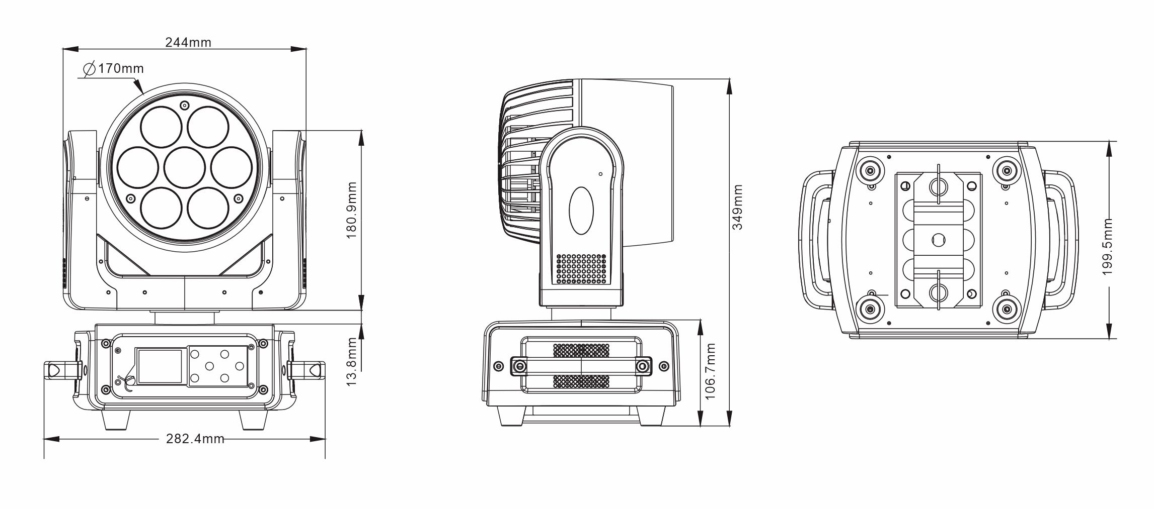 光源:7颗40W大功率RGBW 4合1 LED