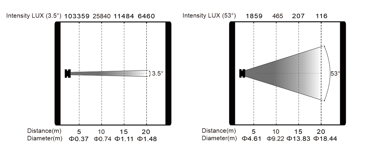 变焦范围: 3.5° - 53°
