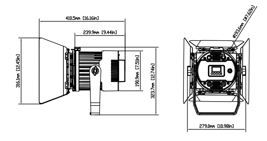 预设2700K / 3200K / 4300K / 5600K/ 6500K和 8000K色温模式,可线性调节色温2700K-8000K