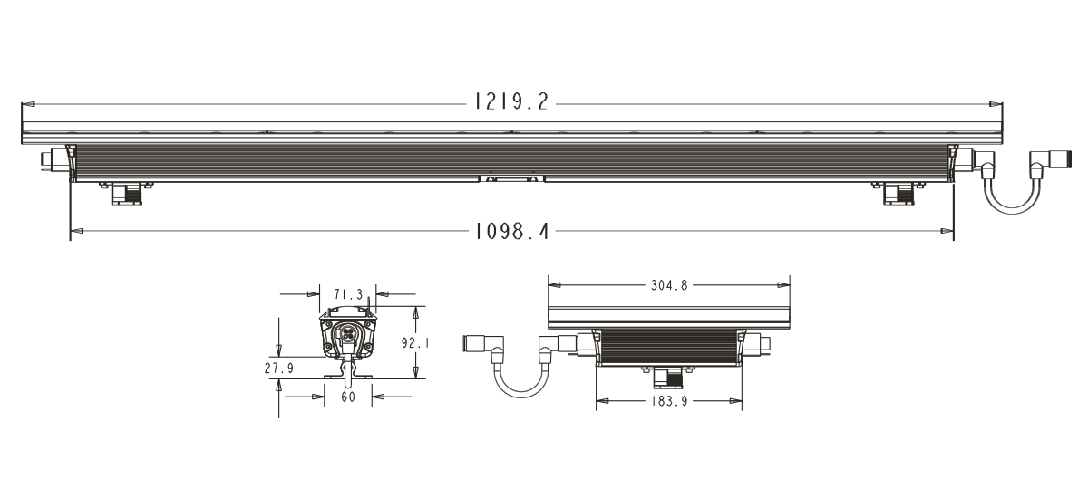 ELV-C 户外RGB / RGBW / RGBA /DW(冷白+暖白) LED变色灯是一款高功率条形灯,单台灯长度可选1英尺(305mm)和4英尺(1229mm),采用国际通用的DMX512信号控制,顺滑的线性调光,高亮度输出, 高档的外观设计,可选不同角度的柔光片以及挡光防炫板,是户外渲染照明的最佳选择。